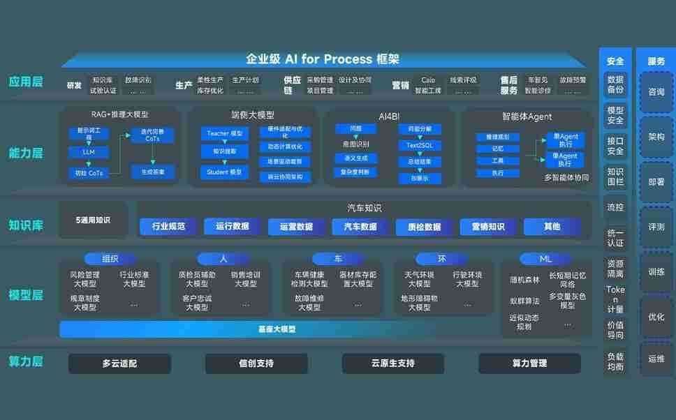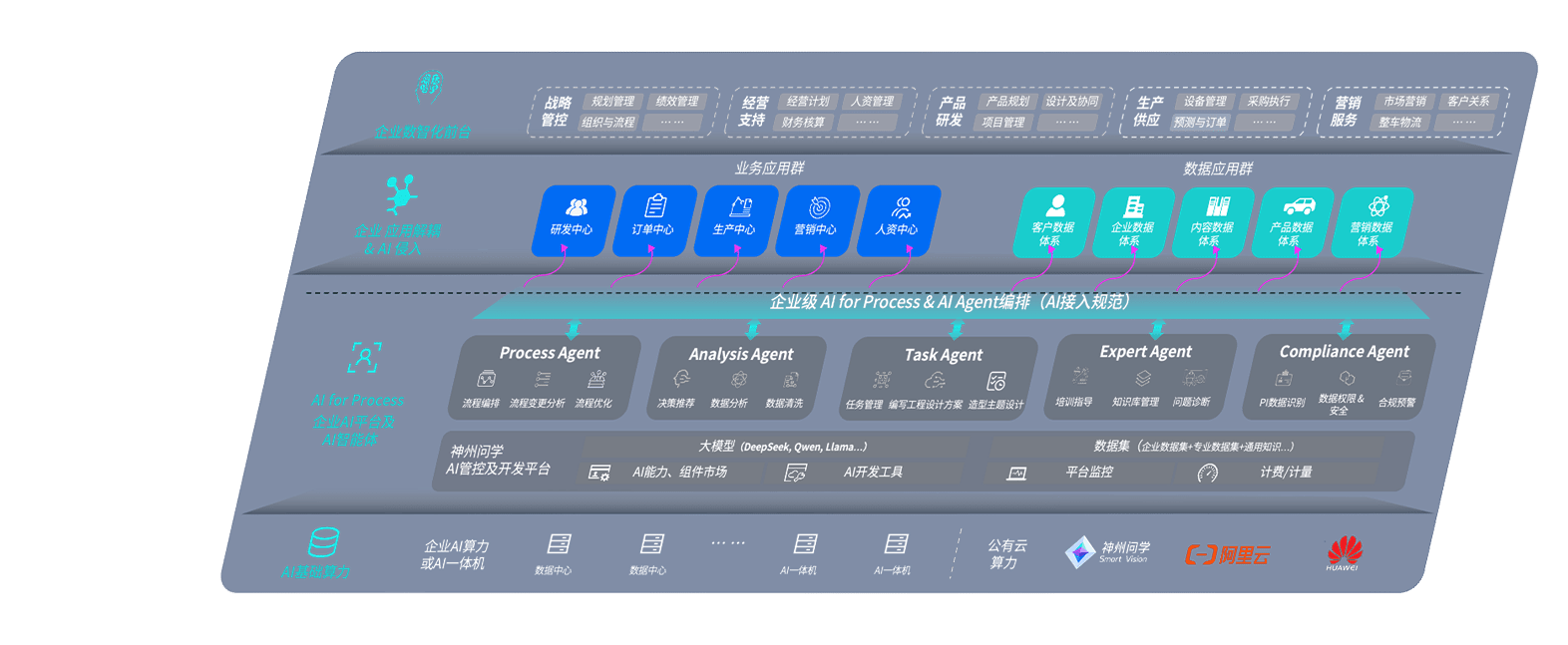 端到端的一站式AI工作空间深度融合了从企业战略规划到日常经营的全流程业务板块,,,定向解决车企内部领域多、、部门多、、链条长、、、、场景碎片化等难题,,,支持车企快速构建以AI为核心的生产力写作体系,,,实现任务执行与AI能力的无缝集成与交互