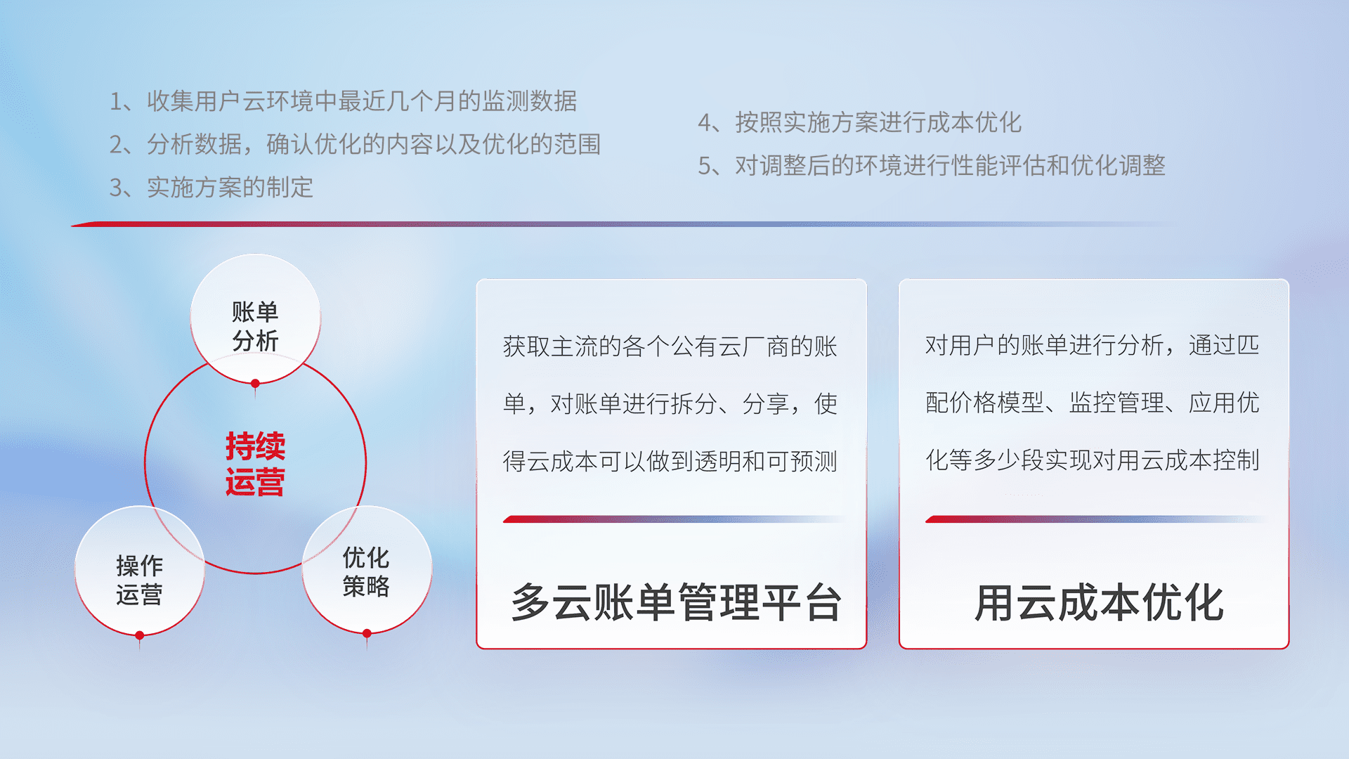监控业务系统资源开销,,对资源的消耗精确计量,,,,实现费用的透明化管理,,,不断提升资源使用率,,调整资源购买方式,,降低资源费用成本,,,用云成本可预测、、、用云费用可优化,,,,云资源配额有据可依。。。